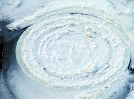 Los Círculos del Hielo, tienen la peculiaridad que tienen unas proporciones perfectas y que giran sobre sí mismo realizando un giro completo de 360 grados en pocos minutos en arroyos y ríos de diferentes lugares así como en sitios donde haya agua congelada.